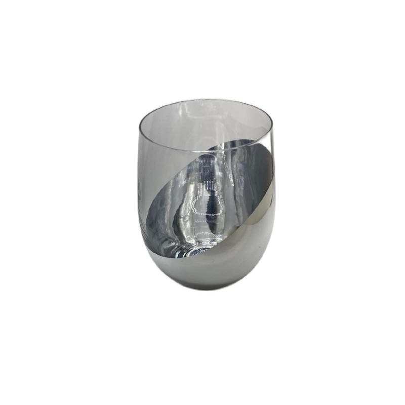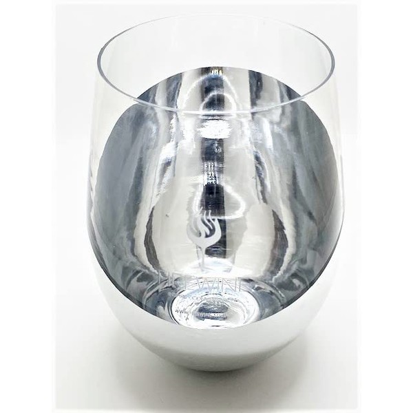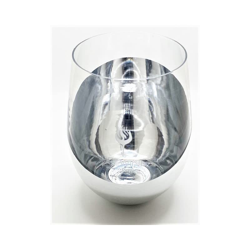 - Sold Individually: Stemless wine glass with metallic silver plating with unique title design.