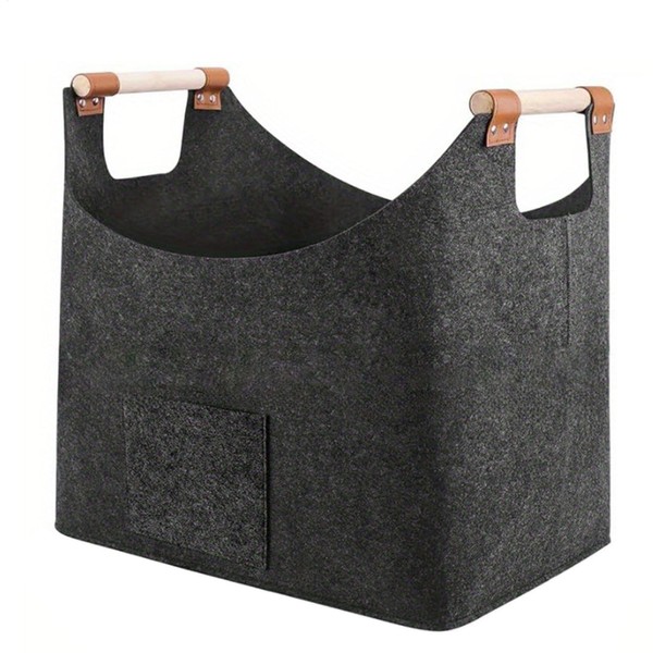 - Effortless Organization for Convenience: With two sturdy wooden handles for effortless carrying, this felt firewood basket provides a practical design. Conveniently store small items like gloves, cell phones, and gadgets in the side pocket, keeping everything you need within reach
