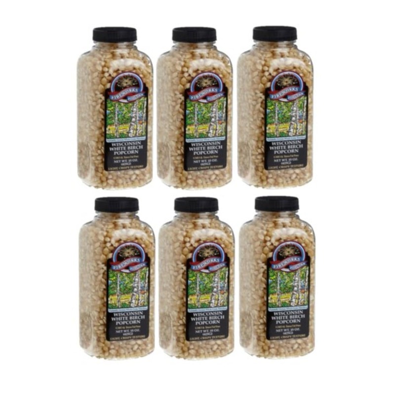 Fireworks Organic Popcorn Kernels - Wisconsin White Birch Gourmet Heirloom - 6 Bottles (15 oz Each) - For Popcorn Makers, Stovetop, or Air Popper - Non-GMO, Natural Snack