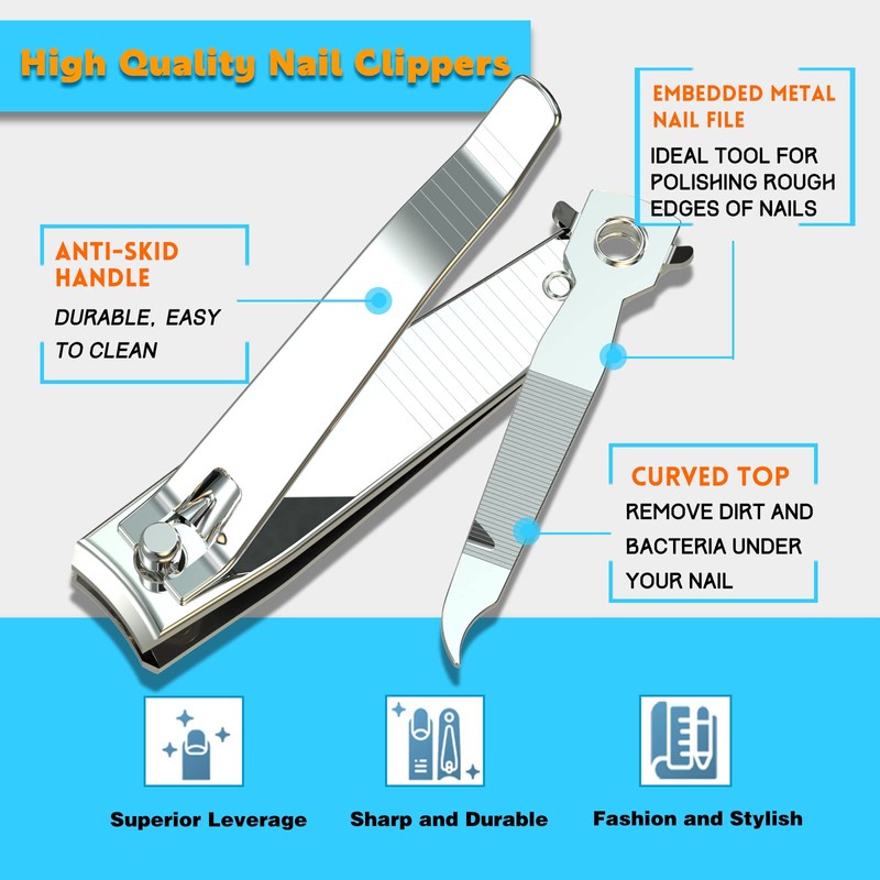 - Ultra Sharp Blades:The sharpest and hand polished cutting edge, sharp stainless steel blade can cut thick nails smoothly and easily, no jagged nail edges. effectively preventing nails and toenails from cracking. Each of our nail clippers has a small embedded metal nail file, which is an ideal tool for polishing rough edges of nails. It is very convenient to keep nails clean and healthy anytime and anywhere.