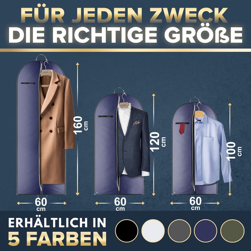 - Maximum protection: the precise workmanship makes our garment bags with zip extremely stable. Only in this way the breathable suit cover offers reliable protection against dust, rain, dirt and moths - for clothing protection in the wardrobe and on the go