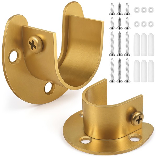 FIRJOY 2Pcs Heavy Duty Stainless Steel Closet Rod Bracket Holder (Gold, 1-1/4")