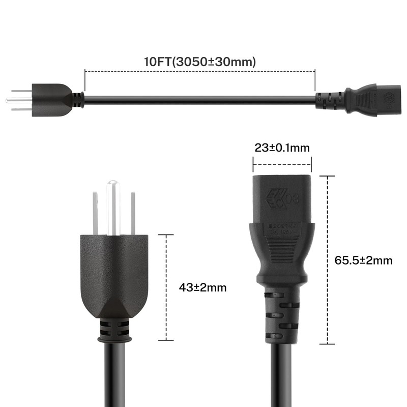 - Specification: IEC 60320-C13, 10ft power cord, NEMA 5-15P