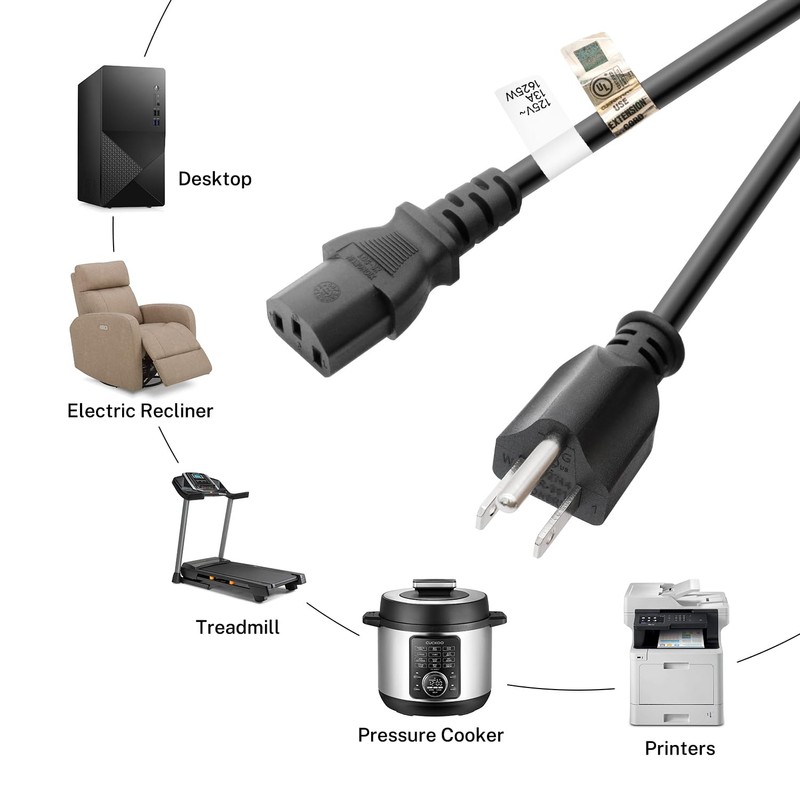- Compatible: Universal power cable works with monitor, printer, or other devices with a 3-pin connector
