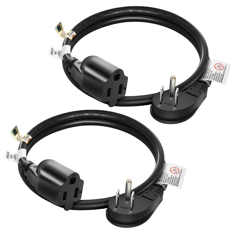 FIRMERST 1875W 15A Flat Plug Black Extension Cord 2 Feet 14/3, Pack of 2