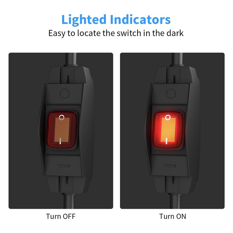- 【Switch Supplement】On off switch built in the middle of the extension cord, the red LED lights up when you press the switch button, making it easy to locate even in the dark.