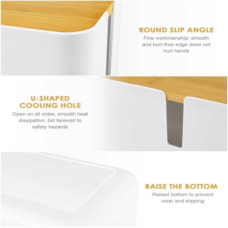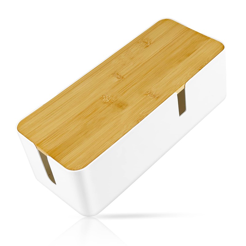 Firschoie Kabelmanagementbox, Aufbewahrungsbox für Kabel mit Bambusdeckel, Aufbewahrungsbox aus Draht zum Verstecken von Kabeln Organisieren Sie die Computerverkabelung, lose Drähte(Weiss)