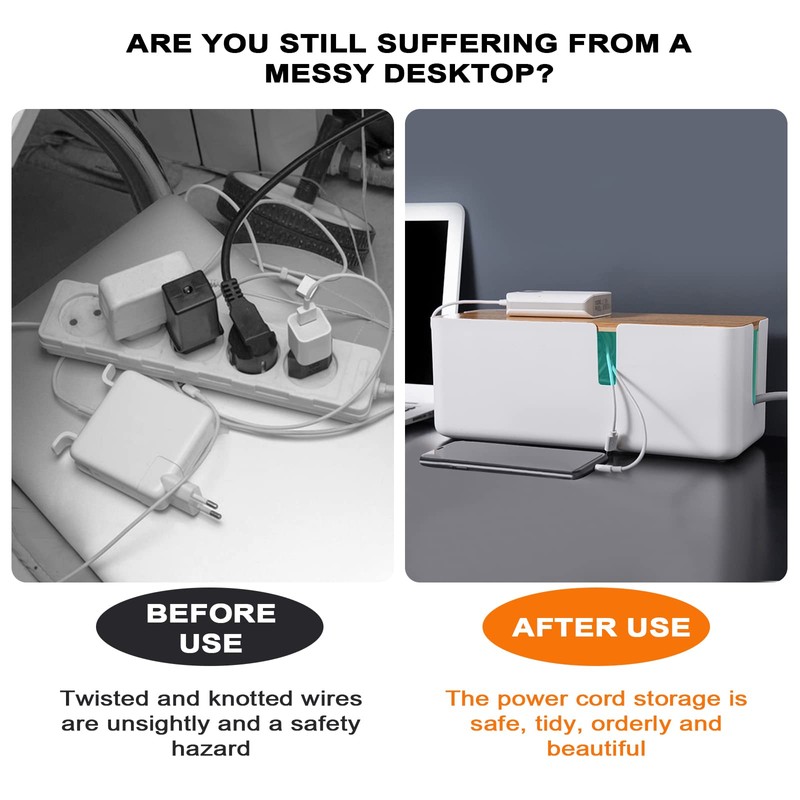 - 【Einfach zu bedienen】 Die Desktop-Kabelaufbewahrungsbox ist einfach zu verwenden, legen Sie die Steckerleiste oder unordentliche Kabel ein, führen Sie die Kabel am anderen Ende oder an der Seite heraus und schließen Sie die Abdeckung. Sie ist sehr einfach zu installieren