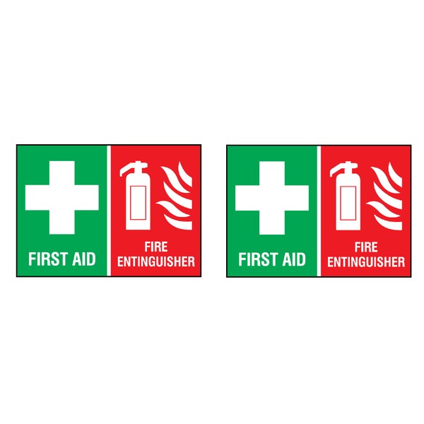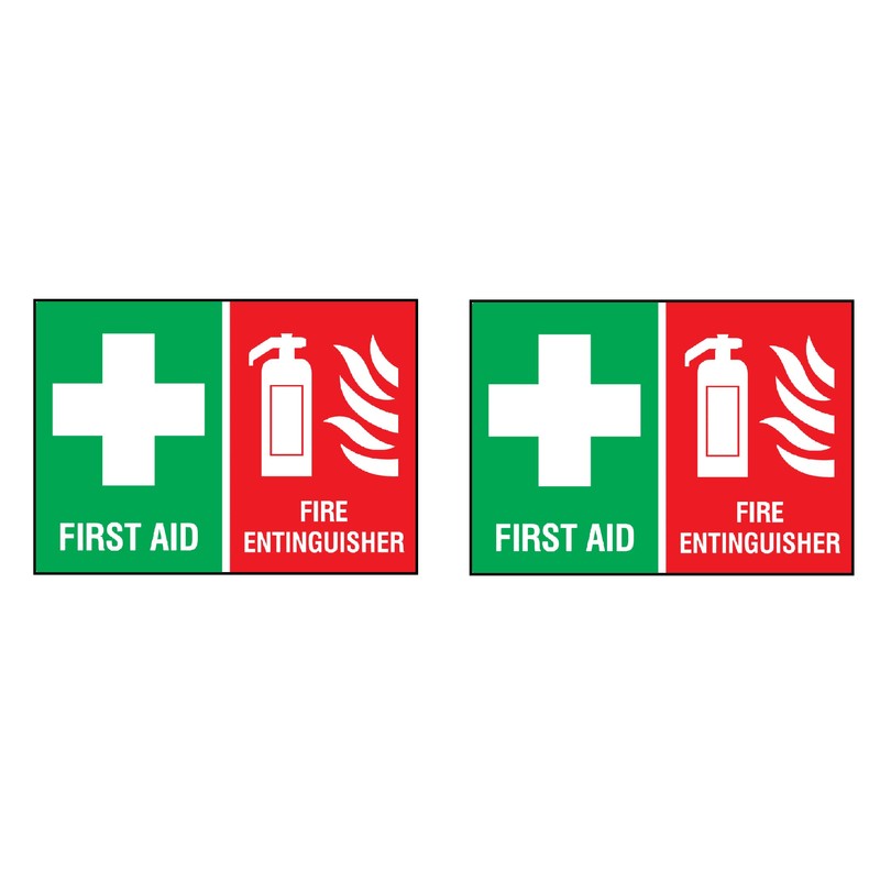 First Aid Fire Extinguisher Inside Vinyl Sticker Decals – Set of 2, 4-Inch Emergency Safety Kit Labels for Cars, Offices, and Toolboxes