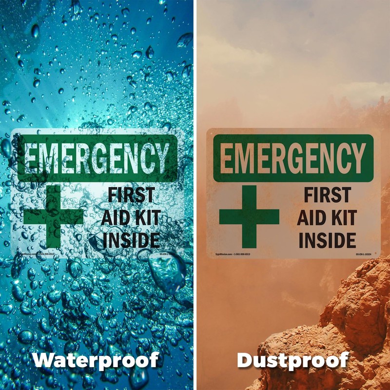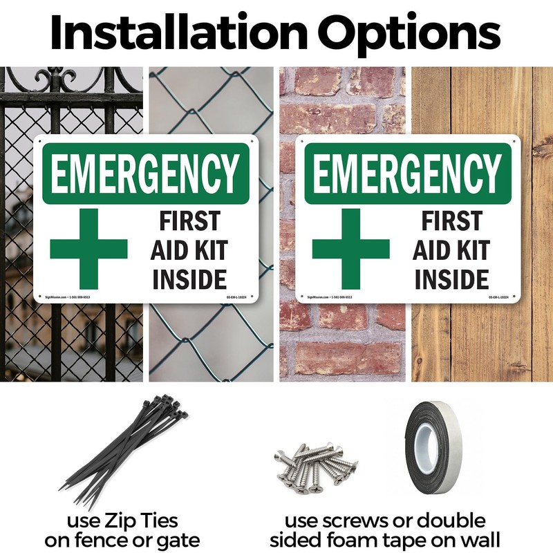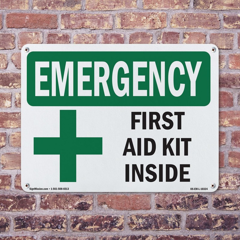 First Aid Kit Inside OSHA Emergency Aluminum Sign 10 Inch x 7 Inch - 10 Pack
