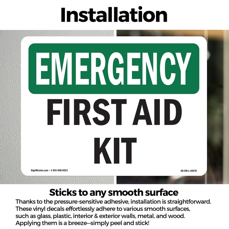 First Aid Kit OSHA Emergency Vinyl Decal Label 10 Inch x 7 Inch - 5 Pack