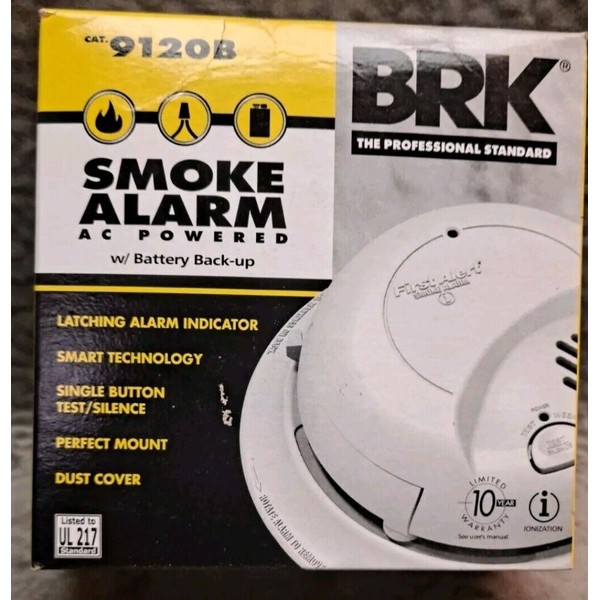 First Alert 9120B Smoke Detector & Alarm, AC Powered With Battery Backup. NIB.