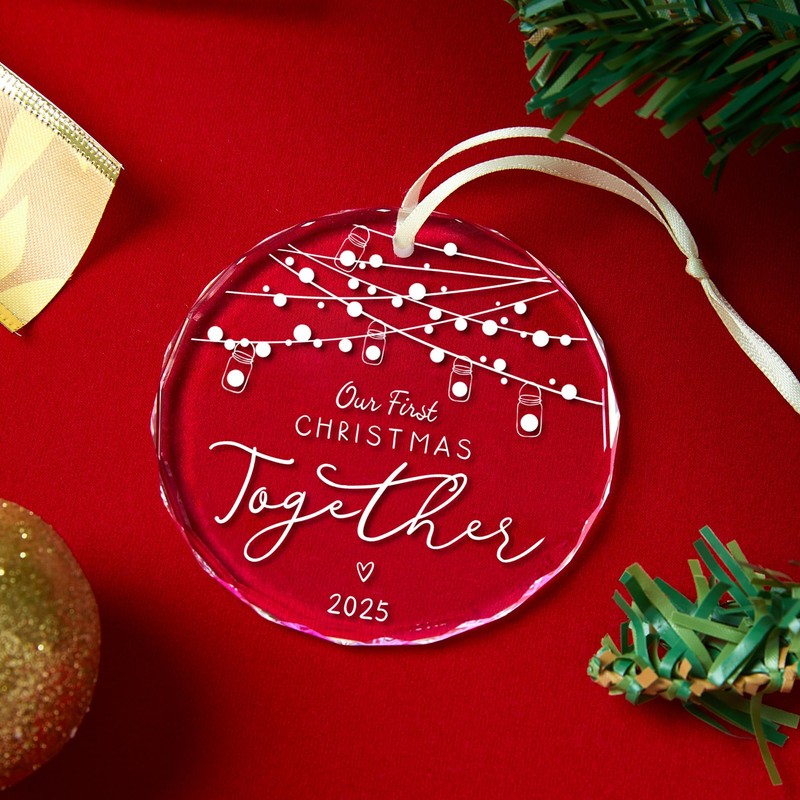 First Christmas Together Ornament 2025, Our Christmas Ornaments 2025 Gifts,Glass 1st Christmas Ornaments with Gift Box,First Christmas Together Gifts for Couple