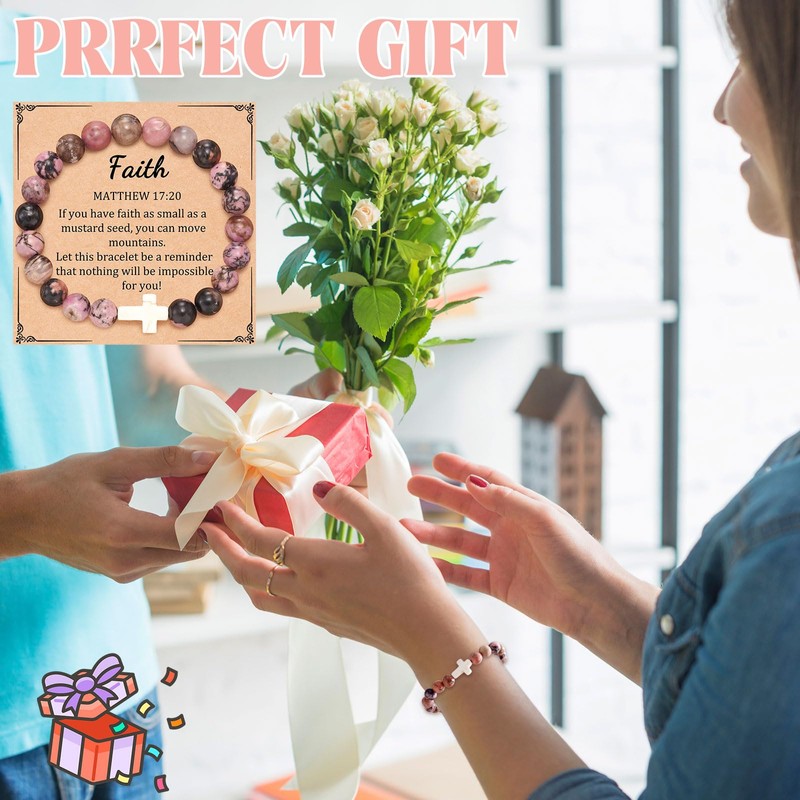 - 【Baptism Bracelet for Girls】-This cross bracelet is made of 8mm natural stone,with the stone cross pendant, the natural stone's color and shape may vary slightly from the picture, handmade item make evey bracelet is unique and meaningful, waterproof, durable, and comfortable for daily wear.