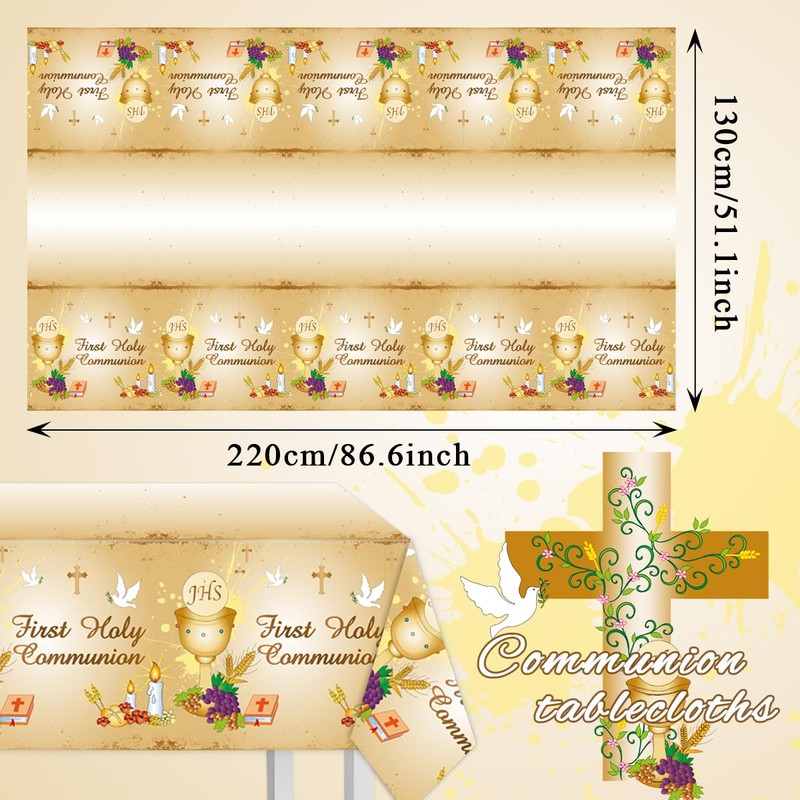 - 🕊【FEATURE】Unique disposable tablecloths are not only printed with“ first holy communion”, but also printed holy grail, cross, peace dove and fruits.Special design attracts people's attention,they will definitely make guests praise it.