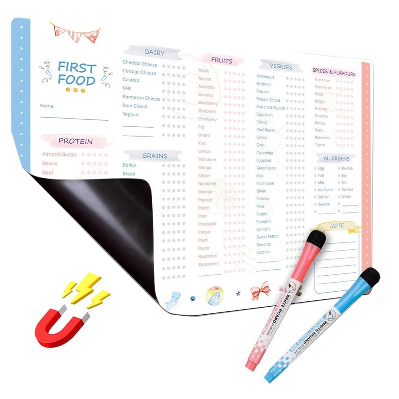 - IDEAL GIFT FOR NEW PARENTS:This first foods chart for the fridge is an excellent gift for new parents. It combines functionality with thoughtful design, providing a valuable tool for tracking a little one growth and development. Help new parents stay organized and confident in their little one care with this foods chart.