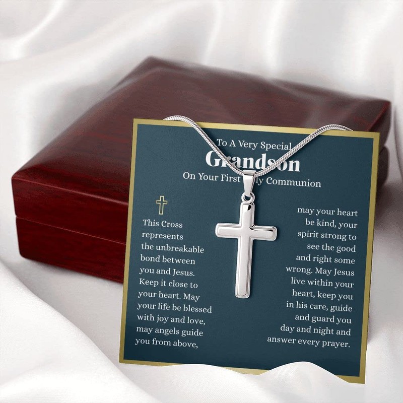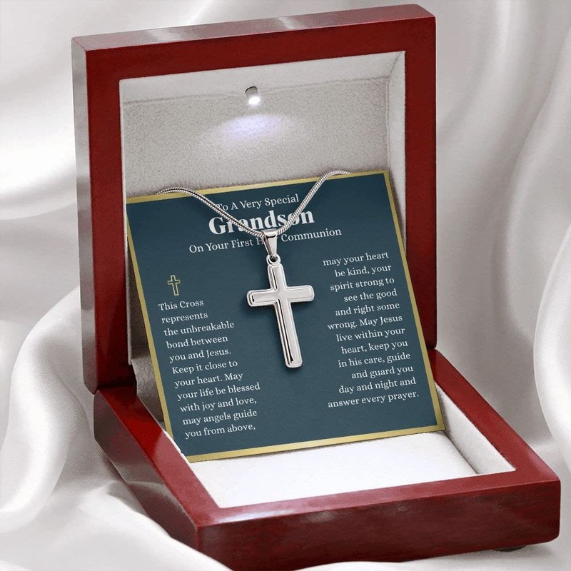 - Elegant Symbol: Delight your grandson on his special day with a beautifully crafted cross necklace, a meaningful First Holy Communion gift, symbolizing faith and love.