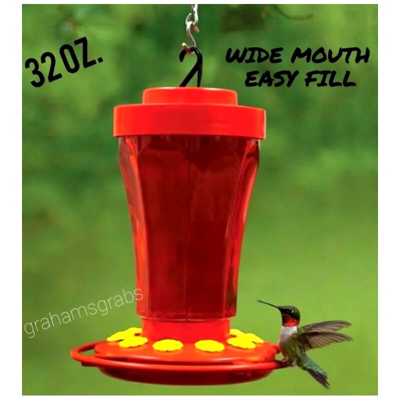 This is the 32 Oz Nectar Capacity Wide-mouth Hummingbird Feeder by First Nature!  These are industry leading feeders with innovative designs and made in the USA! This sets First Nature Hummingbird Feeders apart from any others. These feeders have been carefully designed and tested for daily use and attraction of hummingbirds. To encourage hummingbirds to stay in your area, create a good habitat with a variety of trees, areas of sun and shade, and lots of flowers that hummingbirds favor. Hummingbirds are a key pollinator and are easy to attract.