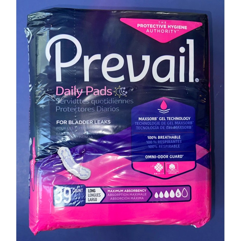 Prevail Incontinence Bladder Maximum Absorbency Control Pads, Long, 39 Count.