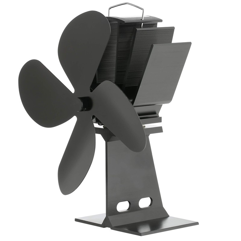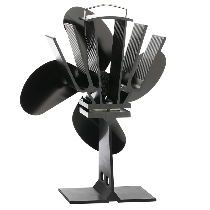 - First4Spares Eco Friendly Black Heat Powered Wood Burning Gas Stove Top Silent Friendly Warm Air Fan