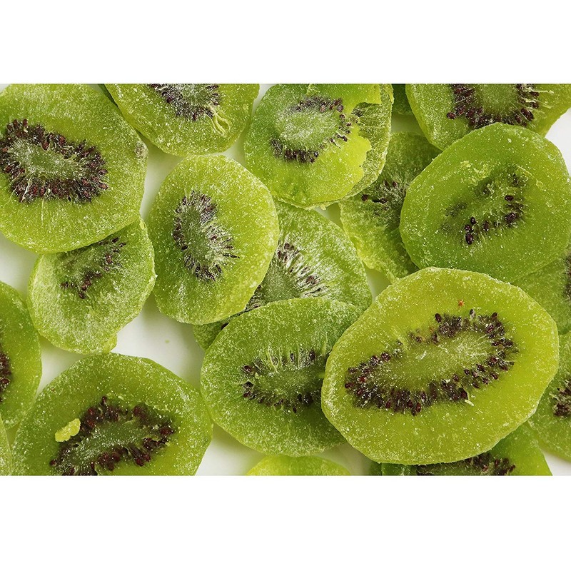 Enjoy the taste of this sweet tropical fruit anytime with the help of these dried kiwi slices. This colorful treat makes a great snack by itself, but also can also be used in snack mixes or as a tropical dessert garnish. Try mixing dried kiwi with dried pineapple, mangos, apricots, cantaloupe, cantaloupe, and nuts for a sweet and crunchy taste of the tropics.
