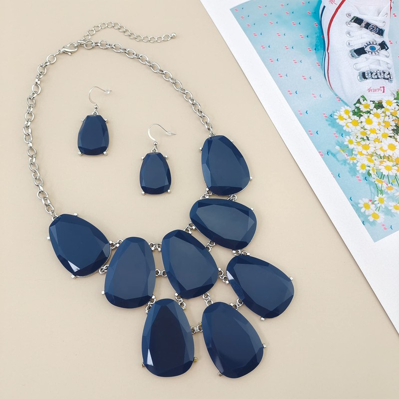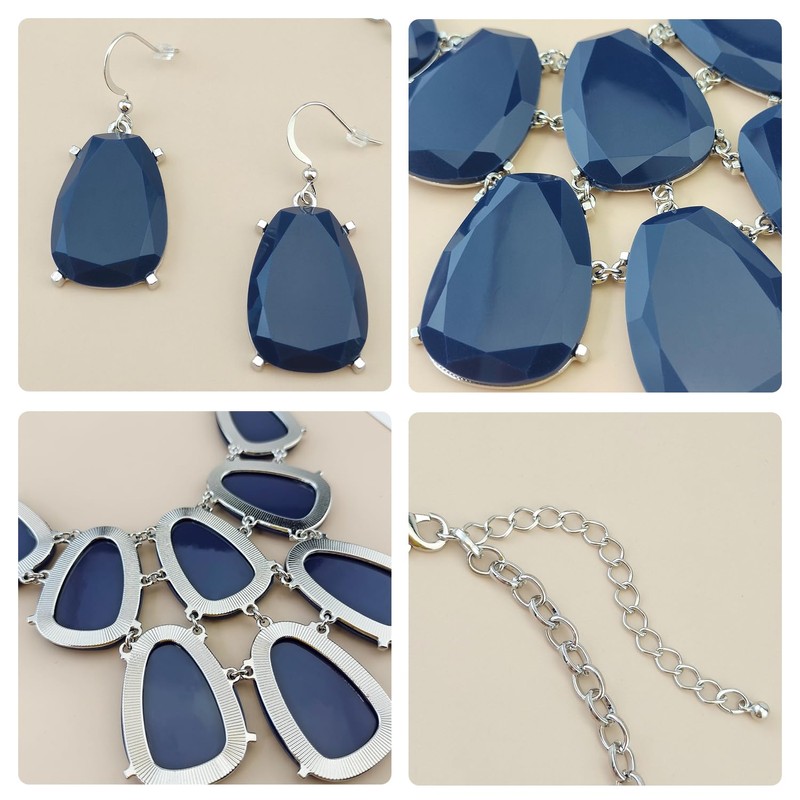 - Diseño maravilloso. Doble fila ligera de eslabones de resina en un patrón armonioso. Este exclusivo juego de collar viene con arete a juego. El collar es una pieza de declaración segura. La longitud del babero está diseñada para colocar alrededor de la parte superior del pecho o la parte inferior de la clavícula.