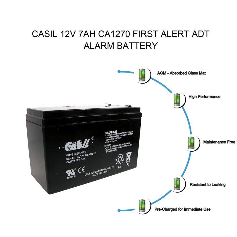 Casil 12v 7ah Sealed Lead Acid Batteries are made with the highest quality of materials available. Our Lead Acid Batteries are typically used for: Home Alarm Systems, Uninterruptible Power Supply(UPS), Lighting Equipment, General Electronics, Home Security Systems, Emergency Systems, Medical Devices, Electric Scooters, Solar Collectors, Wheelchairs and many Other Applications. Whether it's the SECURITY of your home, the MOBILITY of your machine, or even just a personal HOBBY, be sure to use the most efficient batteries available