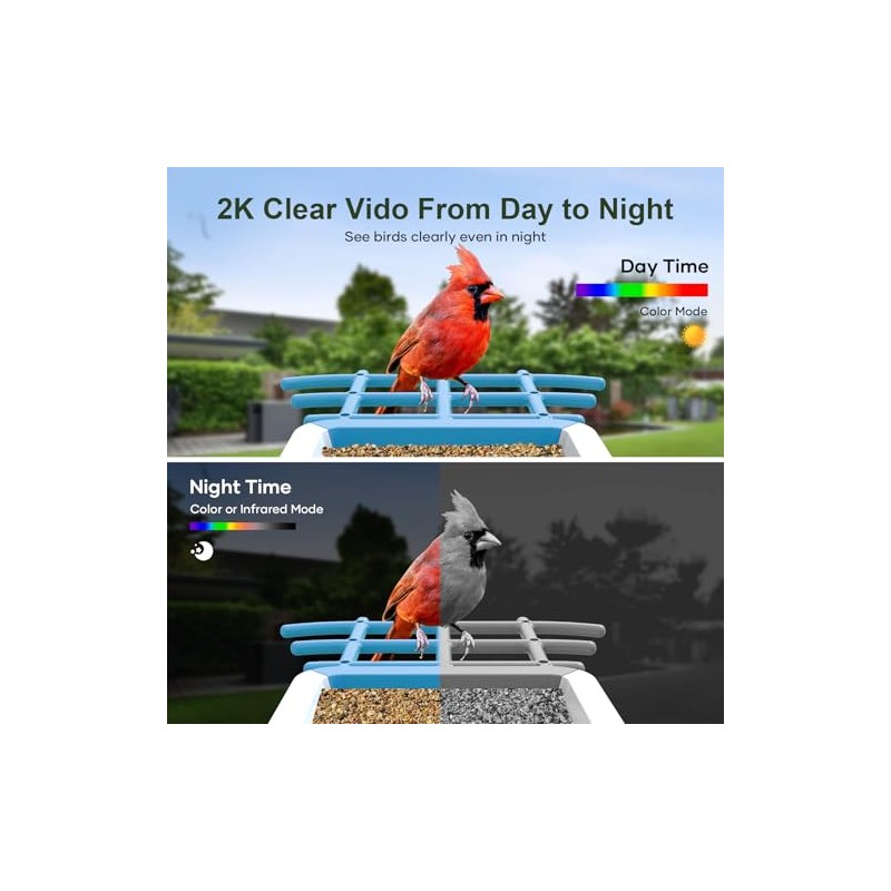 - Video Bird Feeder Camera Live - Video Bird Feeder Camera Live - Capture 2K HD video day and nightautomatically switches to infrared mode after dark, or manually activates color vision.Hear bird songs or chat through the built-in speaker. Videos save to 3-day cloud loop storage (2-year trial included) or add a SD card (up to 12GB, not included).
