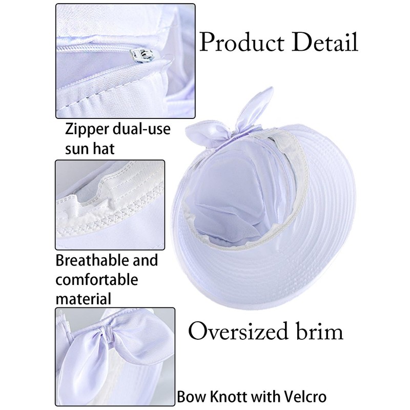- Design:Detachable dual-use cap features a zipper design for easy removal of the top, making it suitable not only as a full sun hat to wear on the head, but also as an open sun hat. And the oversized brim can block the sunlight on the face, preventing UV damage to the face