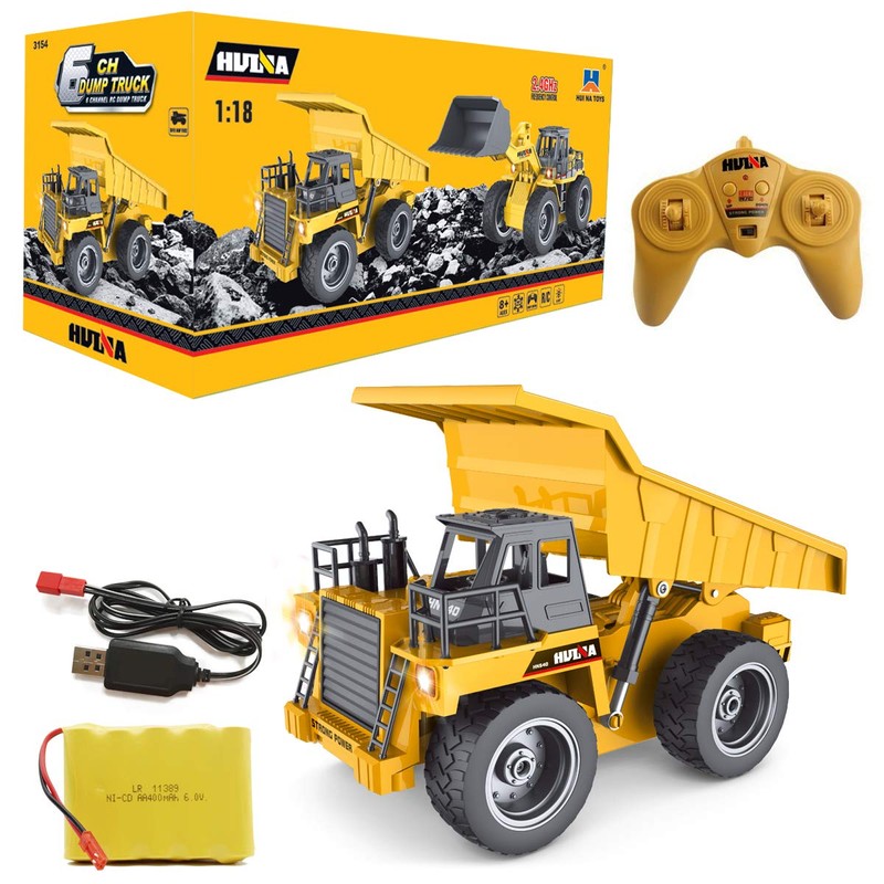 - 4 Wheel Drive & 6 Channel: Go forward / backward; Turn left / right; Dump bed up and down. 4 Wheels drive, enough power to fully load.
