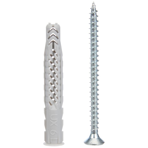 - Box contents: 1 x folding box universal dowels UX (item no. 94759), box with nylon universal dowels (25 pcs. 6 x 50) and matching chipboard screws (25 pieces. 4.5 x 60) of fischer.