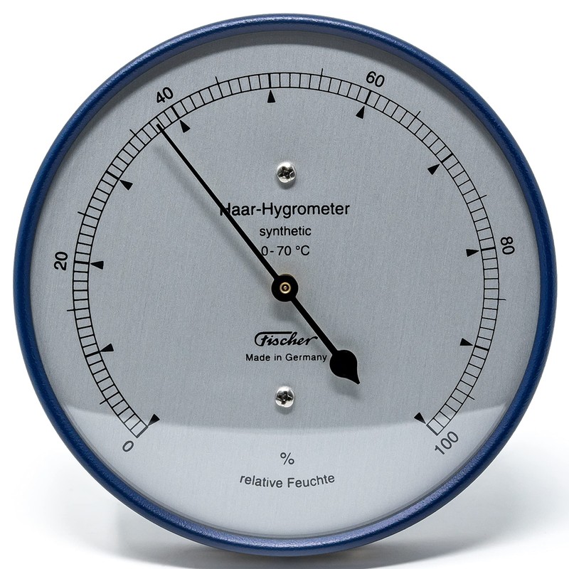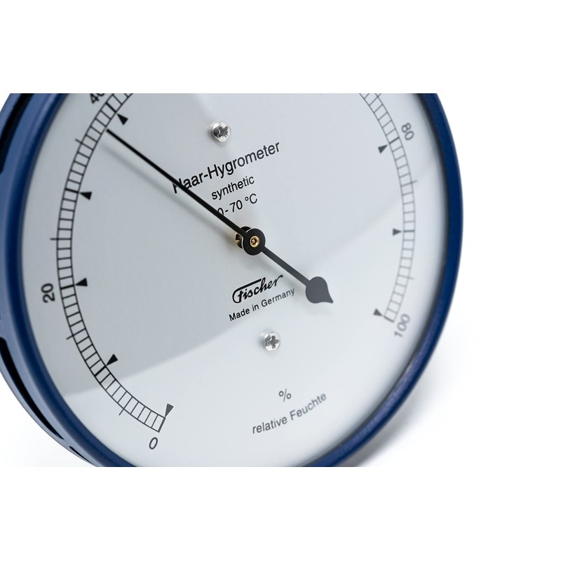 Fischer 122.48 - Synthetic Hair Hygrometer - 103 mm Stainless Steel Humidity Meter Made in Germany - Blue