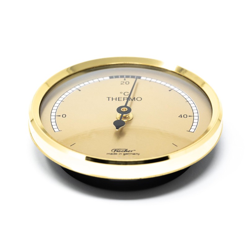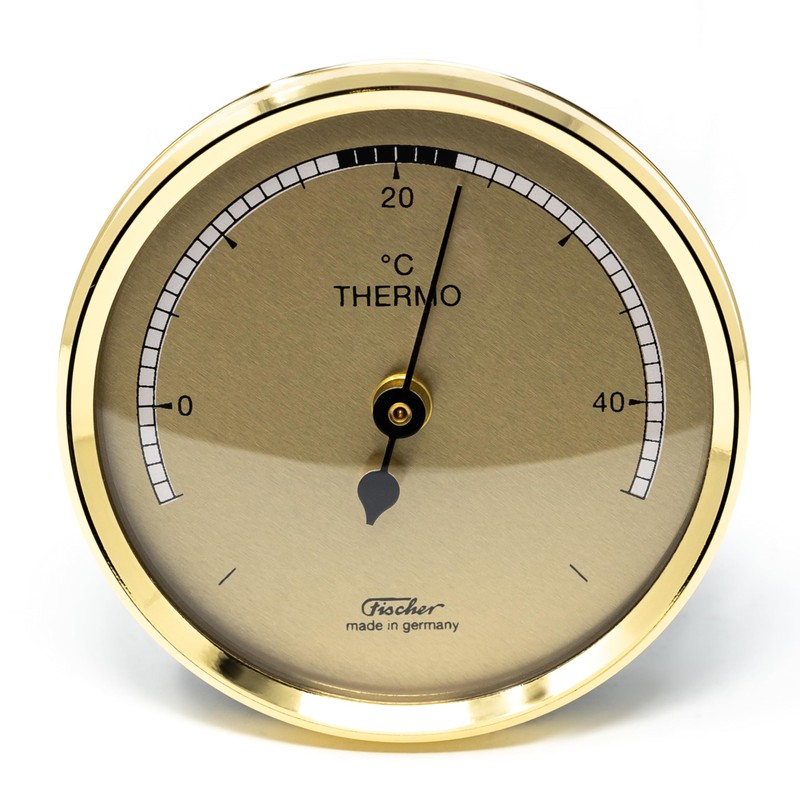 Fischer 151MS Room Thermometer 68 mm Bimetal Thermometer Plastic Housing Brass-Coloured Bezel Made in Germany