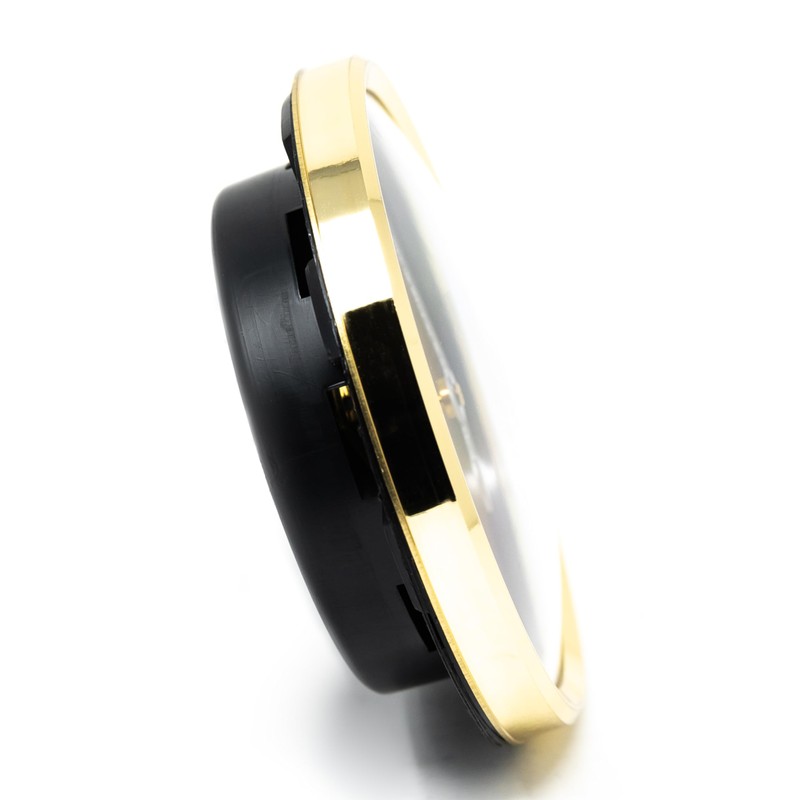 - Elegant – the wall thermometer is a real eye-catcher with its bezel in diamond-cut brass. The gauge has a 68 mm overall diameter and a wall mount for easy installation