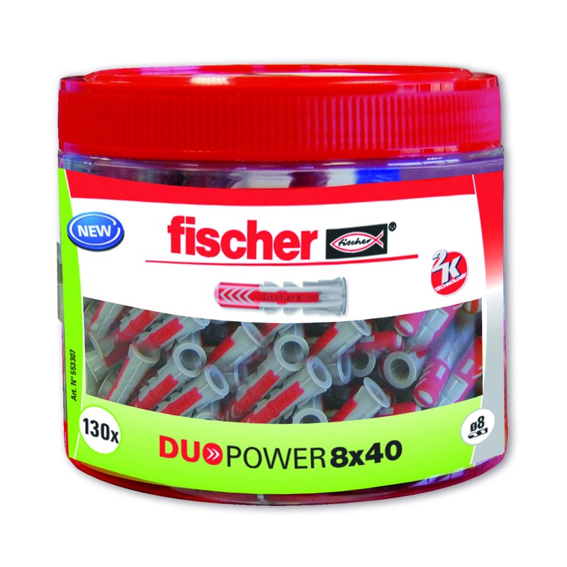 - FISCHER Duopower 8 x 40 mm dowels with 2K technology (perfect fusion of nylon with polypropylene) for use on solid, hollow and plasterboard (plasterboard).