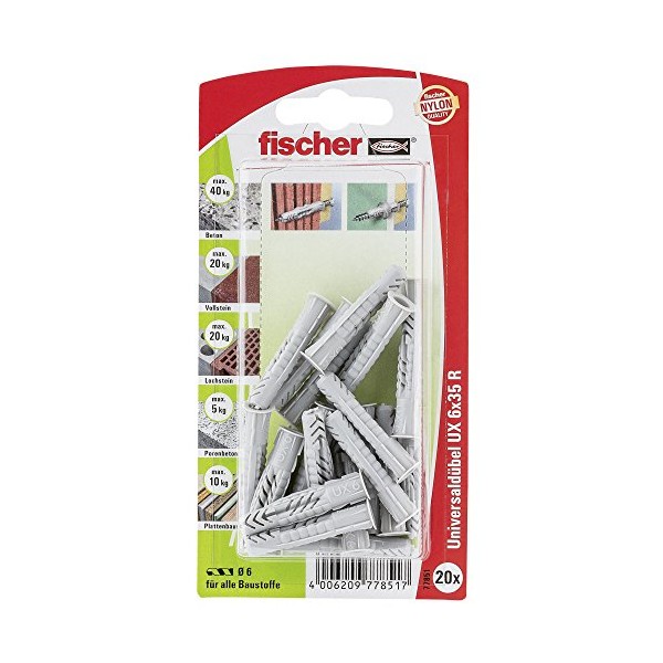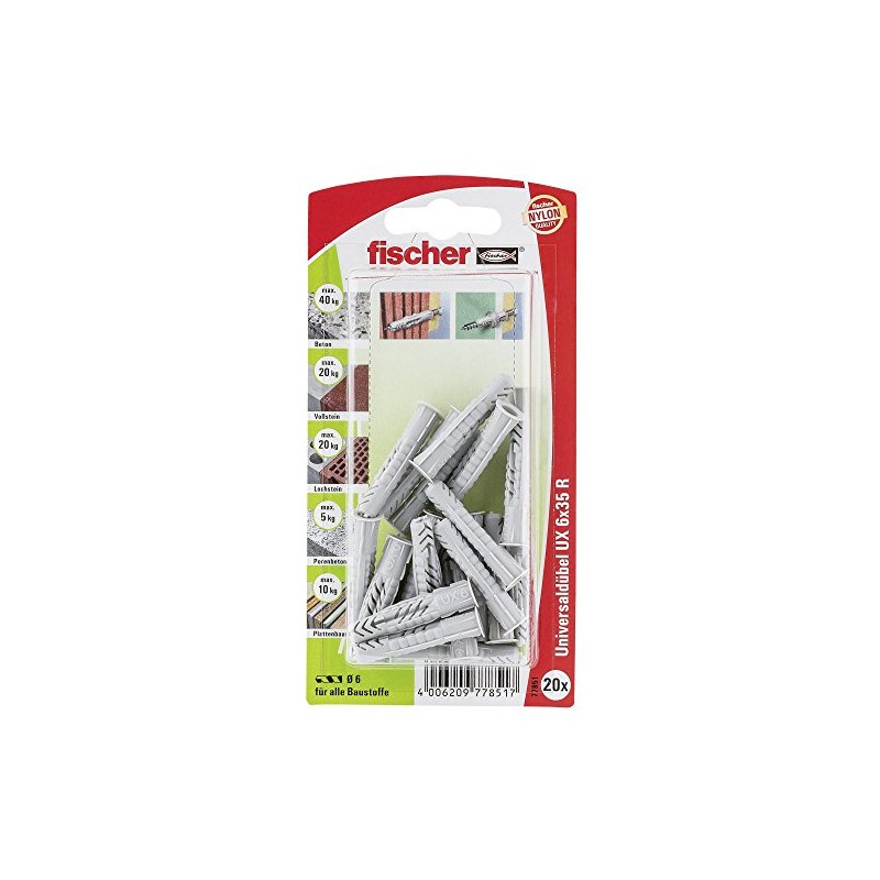 Fischer 77851 6 x 35 mm UX RK Universal Plug - Multi-Colour (20-Piece)