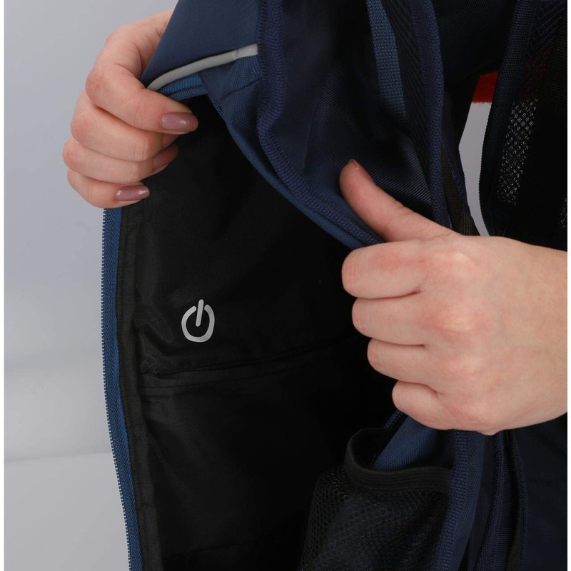 - Battery: The included battery (power: 500 mAh) is rechargeable and ideally hidden in the backpack. The service life is 15 hours