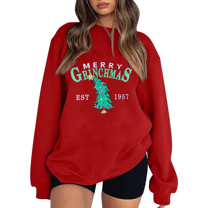 Fiscrat Merry Christmas Sweatshirt Womens Grinchmas Sweatshirt Funny Christmas Tree Sweatshirts Xmas Pullover Tops Red