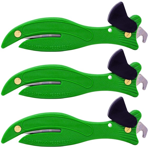 Fish 200 Original Closed Blade Safety Box Cutter (3, Green)