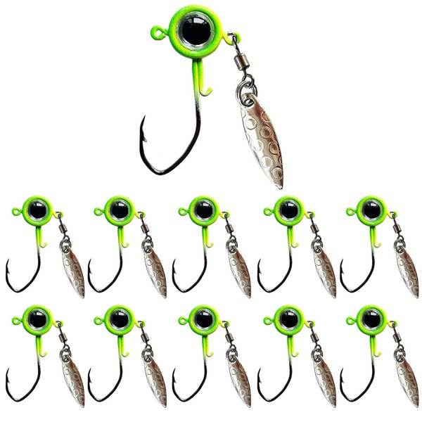 Fish Corner Crappie Jigs Underspin Jig Heads 3D Eyes Crappie Jig Heads Fishing Jig Heads for Crappie Bluegill 10 Packs 1/16oz Green