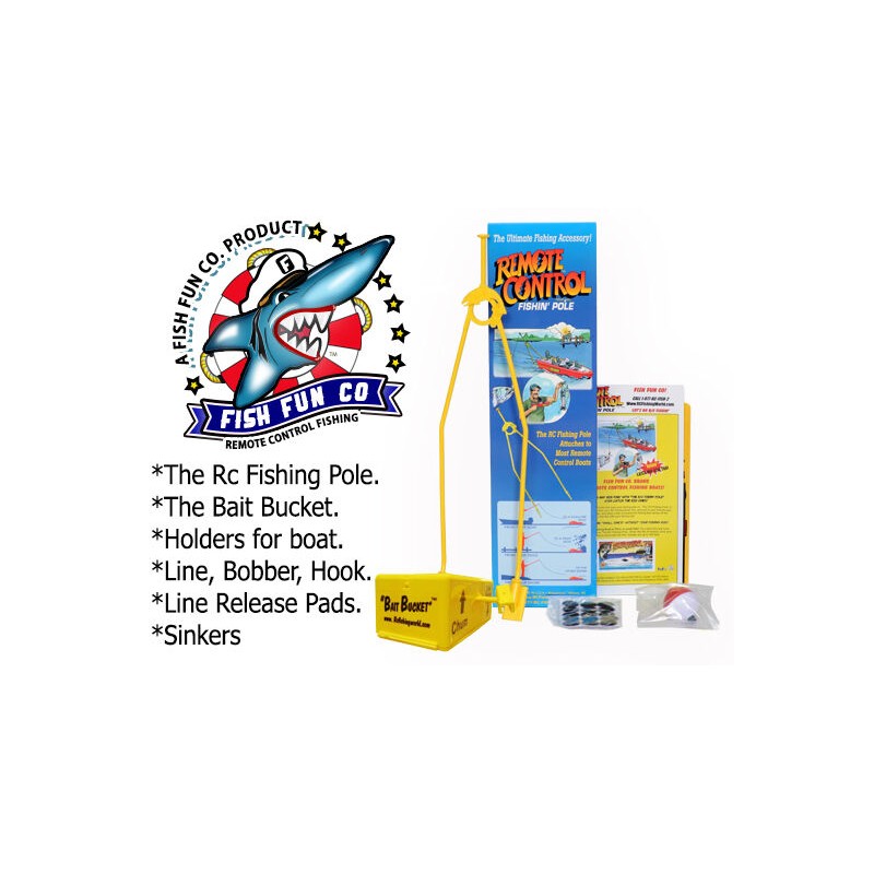 For Service Call Fish Fun Co. Customer Service Phone Number 1-734-502-8796 Want to Spread Chum and Catch Fish with a Remote Control Boat? Includes: This New Product May Change The Way You Go Fishing! Remote Control Boat Fishing and Bait, Chumming Attachment The Rc Pole and Bait Bucket fits on Any Remote Control Boat! Use The Rc Fishing Pole to Pull in Small Fish with the Boat or Drive Your Line Out Hundreds of Feet and Release it Where You Want. Attach the Bait Bucket and Drive a Handfull of Chum or a Baited Hook,or Lure Out Hundreds of Feet and Release it For Big Fish. How Remote Control Fishing Boats ALWAYS CATCH MORE FISH Than Regular Fishing! Have you ever thrown a handful of breadcrumbs from the dock? Drive Your Lure-Bait and Chum Hundreds of Feet! Fill your Bait Bucket with Baited line -lure - chum Drive It with Your Remote Control Boat! Attach your fishing line with hook or lure from your fishing pole. Fill the Bait bucket with chum, drive it out and release it! rive Your Lure-Bait and Chum Hundreds of Feet! FOR CHUMMING Create a Fish Feeding Frenzy when you use the Bait Bucket! Fill it with anything fish eat, and Baited Line from your Fishing Pole, drive it out with the rc boat and release it wherever you want. Put a lure in the Bait Bucket and drive it out hundreds of feet, further than you can ever cast! No more bait falling off your hook when you cast, drive it out in the Bait Bucket! FOR SMALL FISH Remove the Bait Bucket, and The Boat pulls em' in! For the small fish instead of using your fishing pole, put a short line and hook, (included) on the end of "The RC Fishing Pole", and when the fish is hooked drive the fish to shore while it's hooked to your boat! FOR BIG FISH! Put the baited line from your fishing pole on the holder on "The RC Fishing Pole" with the line release pads, or put it in the Bait Bucket. Instead of casting drive your fishing line around to your Favorite spot, watch your bobber and when a fish is hooked the fishing line comes off the boat, then reel it in with your fishing rod. That's the fun thing about "The RC Fishing Pole", you can catch any size fish! Use your fishing pole and drive your bait anywhere. And when the fish is hooked the line disconnects from the boat and you reel in the fish!