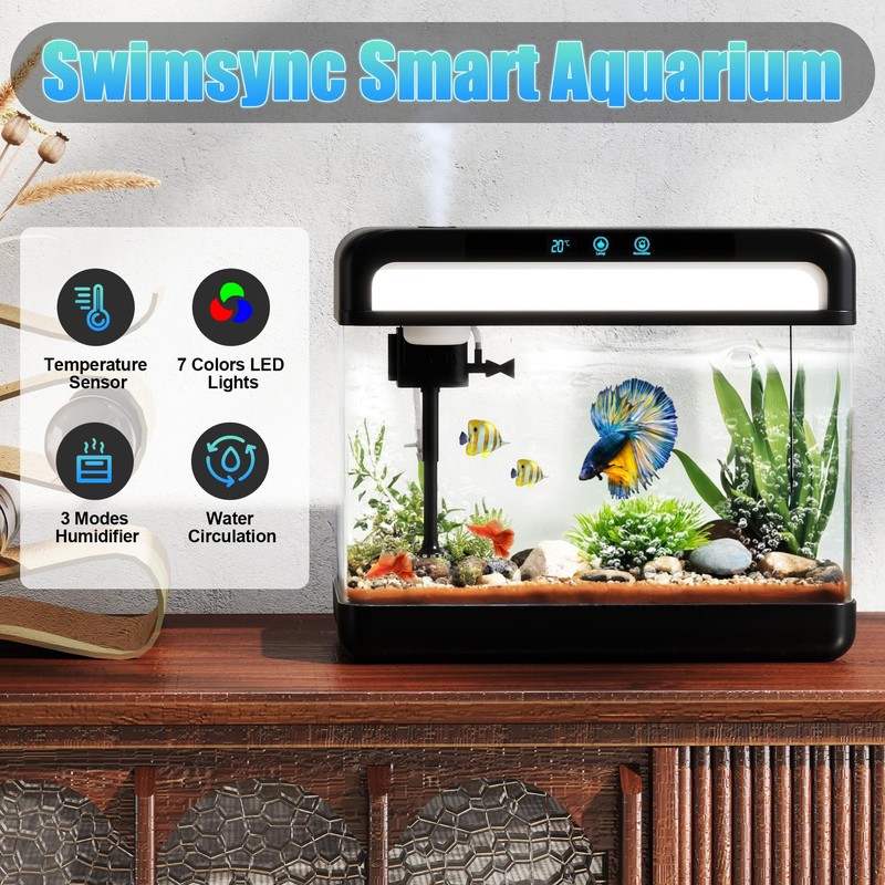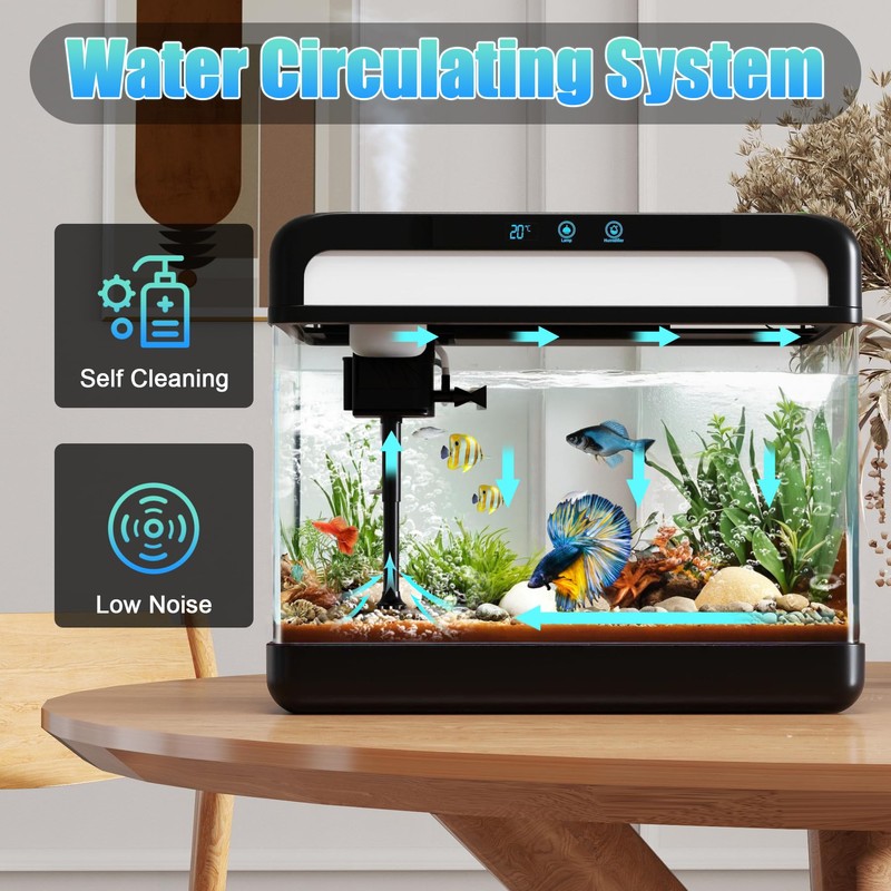 Fish Tank Aquarium 3 Gallon, Smart Aquarium Kits - Silent Water Pump,Self Cleaning System,7 Color Lights,Temperature Display, Aromatherapy, Advanced Filtration