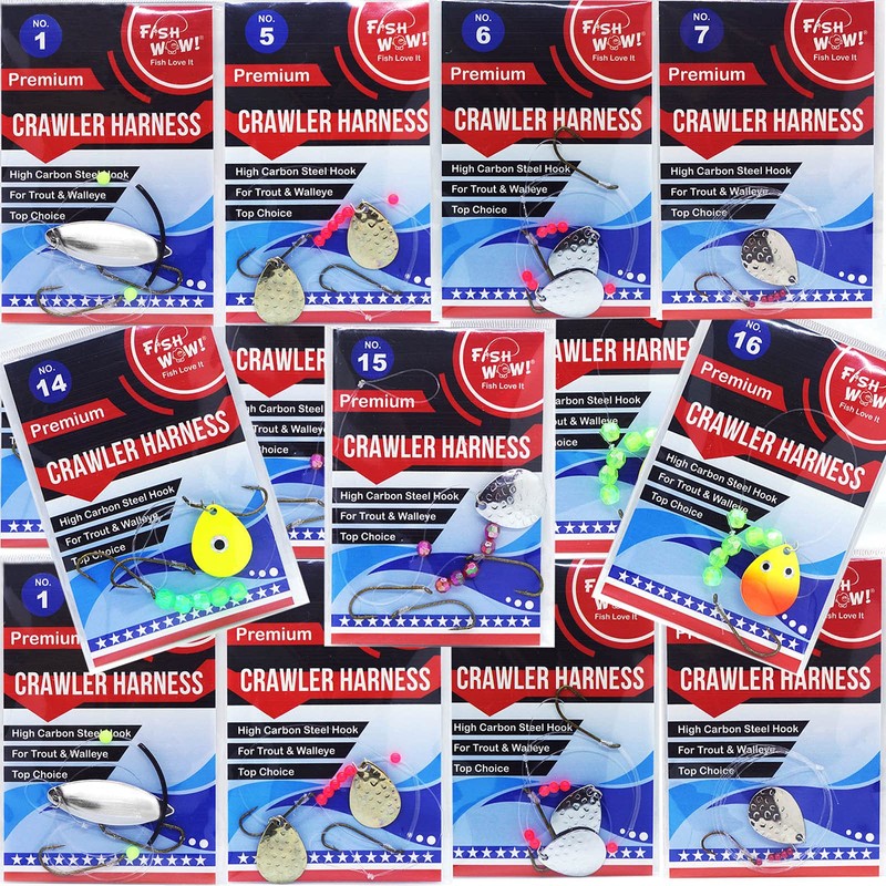 Fish WOW! 14 Packs 7 Styles Crawler Harness Walleye Spinner Rig 1-Hook, 2-Hook, 3-Hook