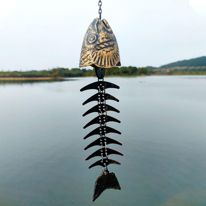 Fishbone Wind Chimes Relaxation Sound Beautiful Melody Iron Hanging Ornament for Home Decoration