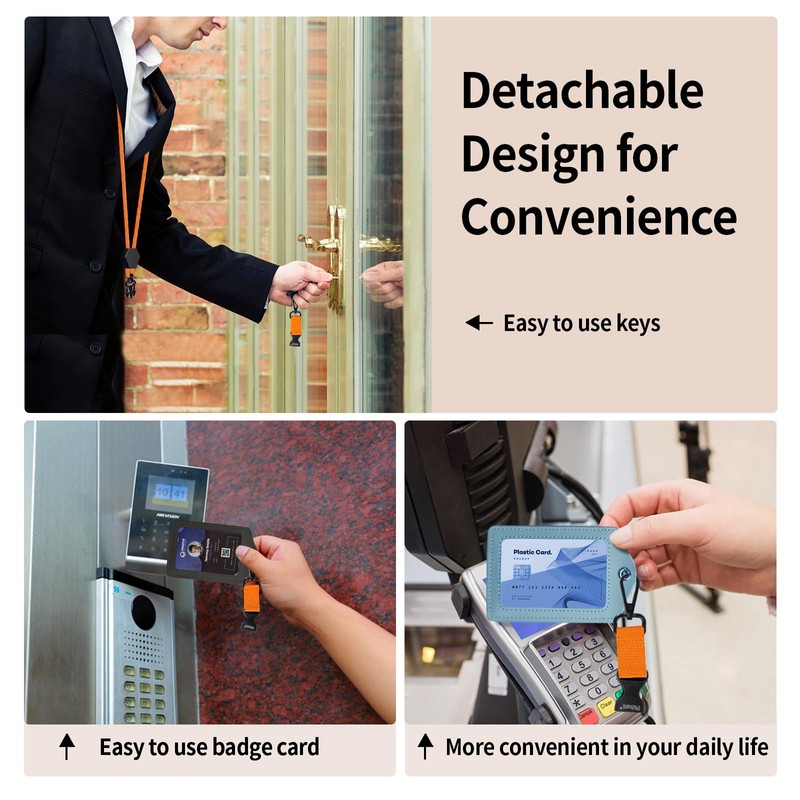 - Unique Detachable & Safety Breakaway Design: The safety breakaway buckle at the end of the key lanyard releases when the cute lanyard is accidentally pulled or snagged, but it can be reattached again and is strong enough to secure keys or badges. And the quick-release buckle design allows you to take out hanging items as needed without taking off the lanyard, and you can pass quickly without bending down. (swipe card/open door)