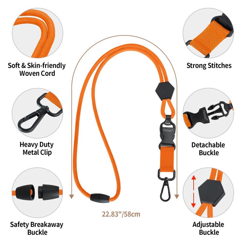 Fishent Breakaway Neck Lanyards for ID Badges, Adjustable Sturdy Round Cord Heavy Duty Key Lanyard with Detachable Buckle for Men Women Car Keys Card Holder (Orange)
