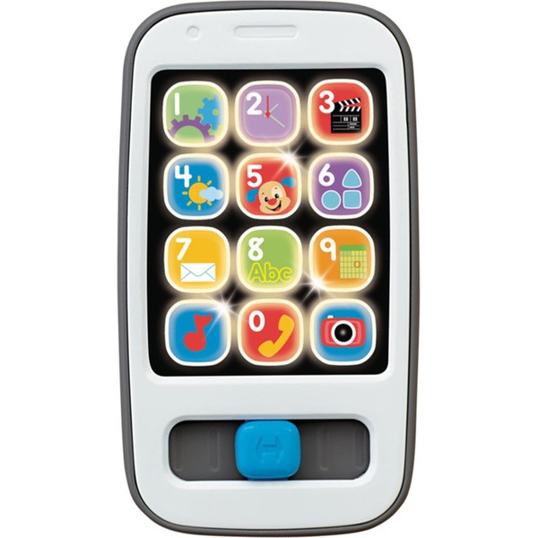 A fresh, sleek phone, just for baby! Press any of the "app" tile buttons to hear more than 20 songs and phrases about numbers, counting, greetings and more. Light dances along to the music. Baby can also move the slider back and forth to activate additional songs and sounds.
