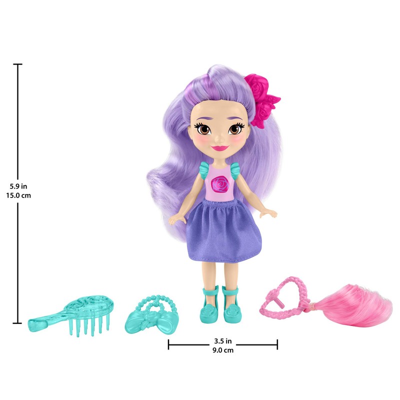 Fisher-Price Preschool Toy Sunny Day Pop-In Style Blair, 6-Inch Poseable Doll with 3 Hair Accessories for Pretend Play Ages 3+ Years