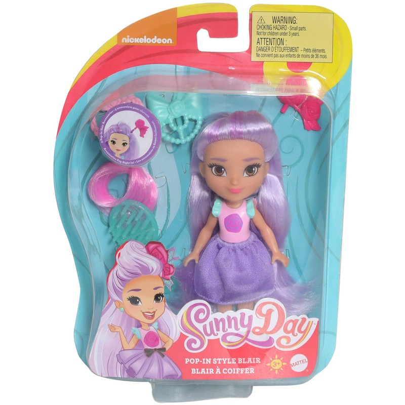 Keep smiling and styling with Sunny and her pop-in hair accessories inspired by the Nickelodeon preschool television series, Sunny Day! Sunny is the best friend and the best hairstylist in Friendly Falls. With her hair tools and styling skills, she's always ready to save the day, one hairdo at a time! Pop- In Style dolls (Sunny, Rox and Blair) are posable and each feature 3 pop-in hair accessories, 9 pop-in spots and a tiny comb for hairstyling play! Little stylists can pop in accessories to create their own style or mix and match with best friends – Sunny, Rox and Blair! Each doll measures 6-inches (approx. 15cm) tall and features the themes of friendship, pets, adventure and more. Collect them all! Each sold separately, subject to availability. For ages 3 and up.