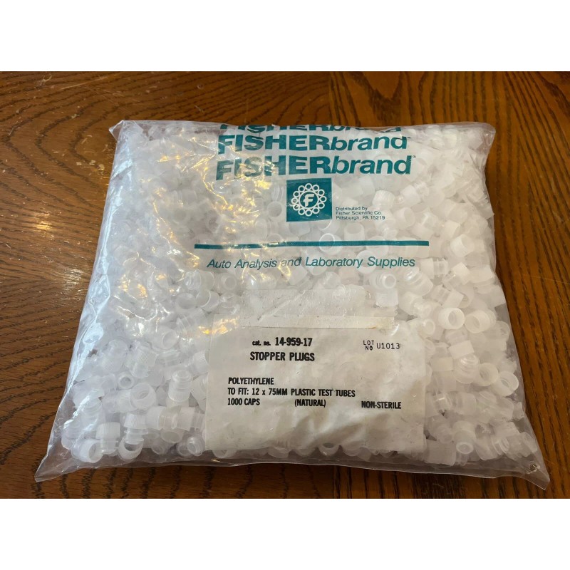 FISHERbrand test tube stopper plug caps. NEW (old stock) Qty-1000 #14-959-17 - Fits 12 x 75MM plastic test tubes